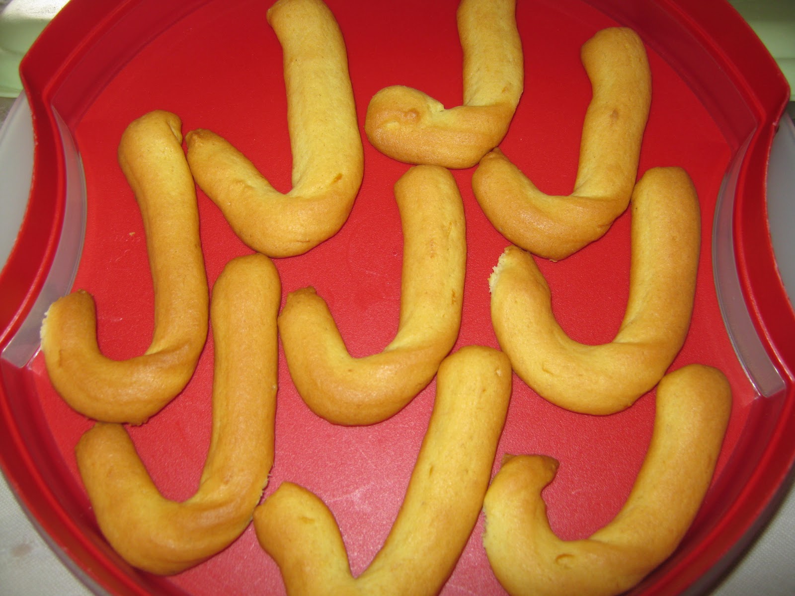 Forrar um tabuleiro com uma folha de papel vegetal e reservar. Bater o ovo com o açúcar até obter um creme. Acrescentar a margarina amolecida, continuando a bater até conseguir uma massa homogénea. Adicionar, aos poucos, a farinha juntamente com o fermento, misturando bem; antes da última adição de farinha, juntar a raspa de limão à massa e mexer bem. Colocar a massa numa seringa (ou saco de pasteleiro) com o bico frisado e formar 'jotas' sobre a folha de papel vegetal reservada até esgotar toda a massa. Levar ao forno pré-aquecido a 180ºC durante 10-12 minutos até ficarem ligeiramente dourados. Retirar, deixar arrefecer sobre uma grelha e guardar numa caixa hermética ou lata de biscoitos. Nota: a receita original chama-se 'Esses' (podem ver aqui), mas como fiz estes biscoitos para oferecer ao meu avô no Dia do Pai, decidi fazer a letra inicial do seu nome e rebaptizei-os :)