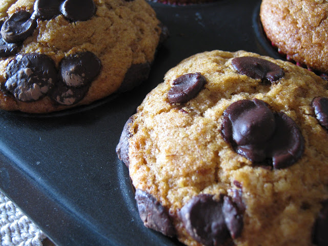 Numa tigela, deitar a farinha, a canela e o fermento. Sem misturar, fazer um buraco no meio e reservar. Noutro recipiente, juntar a manteiga líquida, o açúcar e o ovo e bater tudo com uma vara de arames até ficar ligado. Adicionar esta massa e o leite ao preparado da farinha, mexendo rapidamente com um garfo. Verter para um tabuleiro de muffins, previamente forrado com forminhas de papel frisado, enchendo-as até 3/4 da sua capacidade. Salpicar a superfície de cada muffin com algumas pepitas. Levar ao forno a cozer durante cerca de 15 minutos a 180ºC. Deixar arrefecer um pouco antes de desenformar e consumir depois de frios. Nota: receita retirada desta cozinha