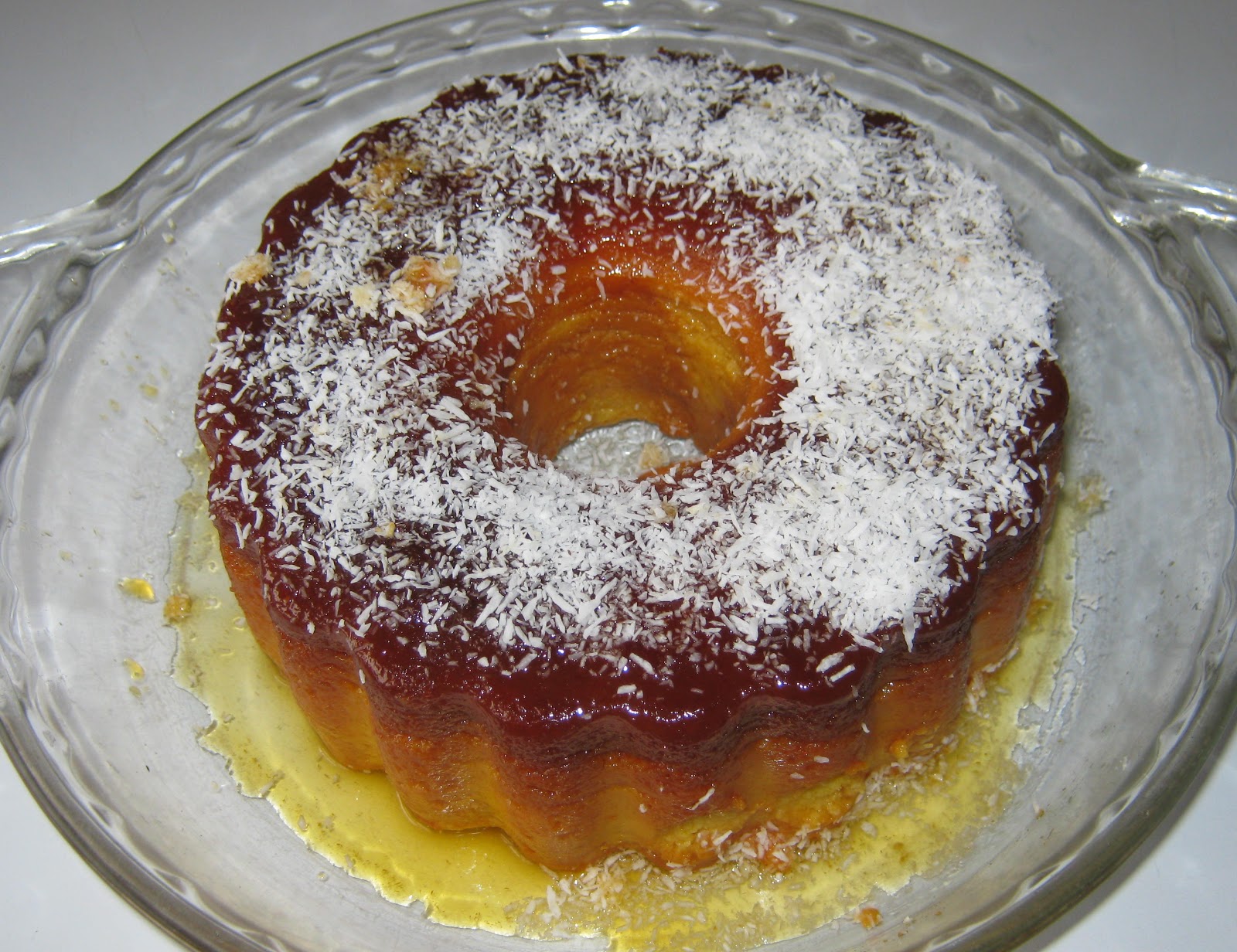 Ingredientes: 1 lata pequena de ananás; 200g de açucar amarelo; 5 ovos; 100g de coco ralado; caramelo q.b para untar a forma (usei caramelo líquido de compra). Preparação: Deitar no liquidificador o ananás escorrido (sem a calda), o açúcar, os ovos e o coco; deixar bater cerca de 5 minutos. Barrar uma forma de pudim com o caramelo. Verter a mistura, tapar e levar a cozer na panela de pressão (com cerca de dois dedos de água). Contar 20 minutos após ouvir o apito da válvula da panela (caso opte por um tacho, deve cozer em banho-maria por 50 minutos). Retirar do lume, deixar arrefecer e levar ao frio de um dia para o outro. Desenformar com cuidado. Servir bem fresco, polvilhado com coco ralado a gosto. Nota: mais uma receita desta cozinha