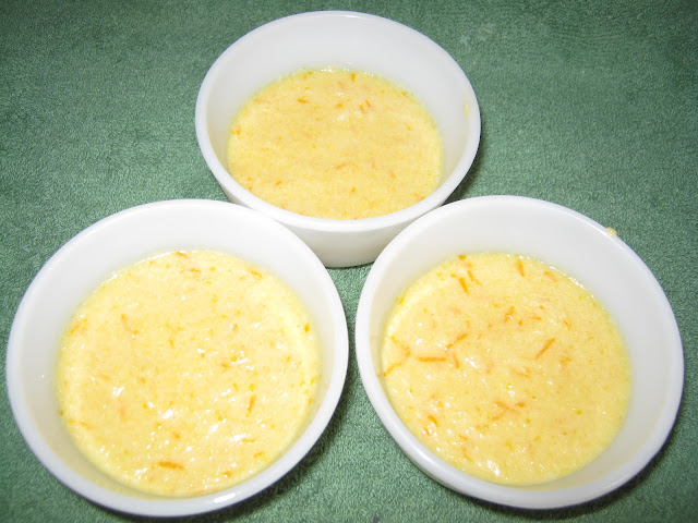 Ingredientes: (para 4 doses) 50g de coco ralado; 4 c. (de sopa) de açúcar amarelo; 1 c. (de sopa) de Maizena (amido de milho); 1 laranja (raspa e sumo); 100ml de leite magro; 1 ovo. Preparação: