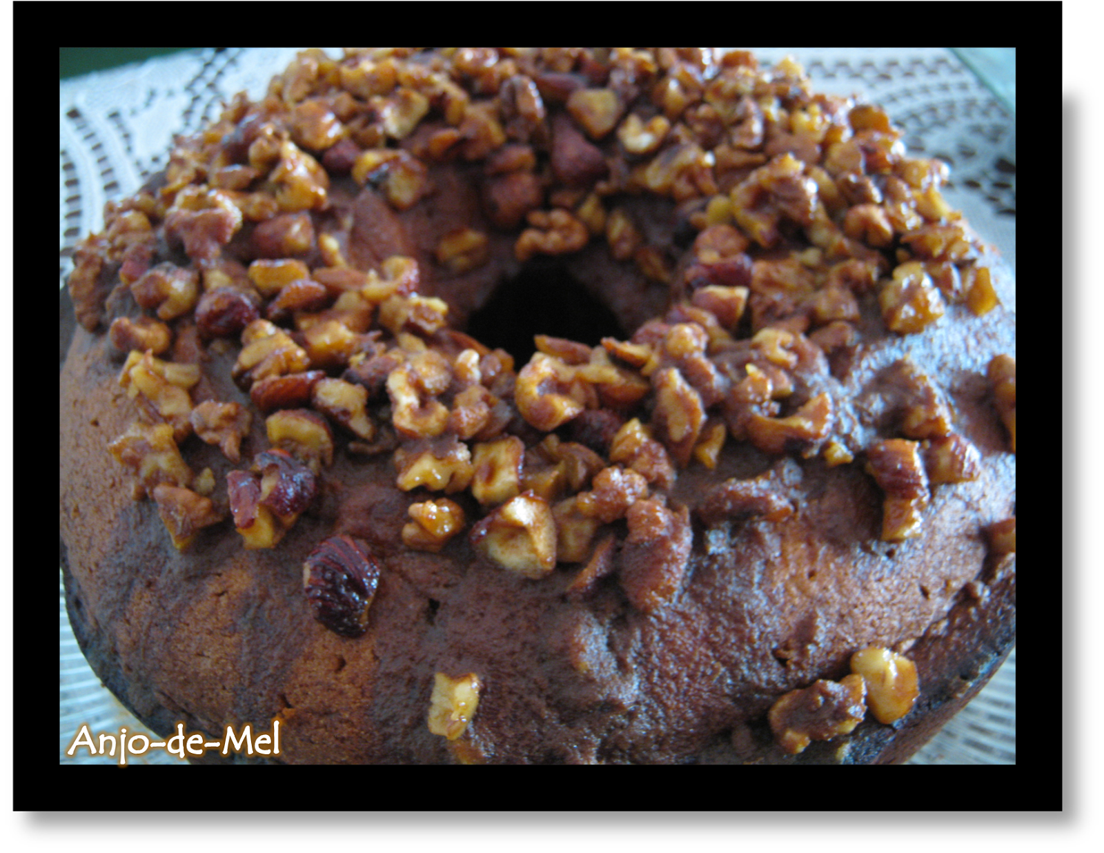 Preparação: Bater as claras em castelo. Incorporar bem as gemas e o açúcar, batendo sem parar com a vara de arames. Acrescentar o caramelo, o leite e o óleo e, por fim, juntar a farinha. Deitar o preparado numa forma untada e polvilhada e levar a cozer em forno a 180º C, durante 60 minutos. Enquanto o bolo está no forno, preparar a cobertura: levar o açúcar ao lume e, quando tiver atingido o ponto de caramelo, adicionar, aos poucos, o leite, a manteiga e o miolo de noz. Deixar cozer em lume brando, mexendo quando formar ponto de estrada. Retirar do lume, deixar arrefecer 2 a 3 minutos e cobrir o bolo com o preparado.