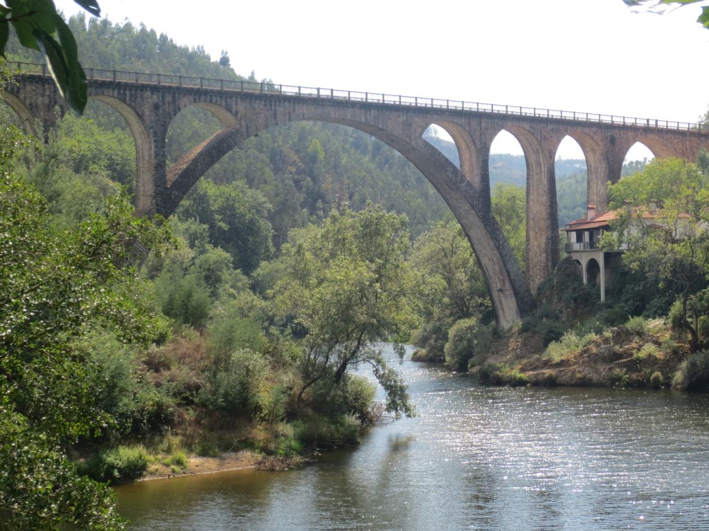Ponte do Poço de Santiago, Sever do Vouga, construída em 1913. A ponte era do comboio (linha do Vale do Vouga, assim se chamava a linha que ligava Espinho a Viseu), agora é uma pista para ciclistas (ou peões). O rio que atravessa é o Vouga.