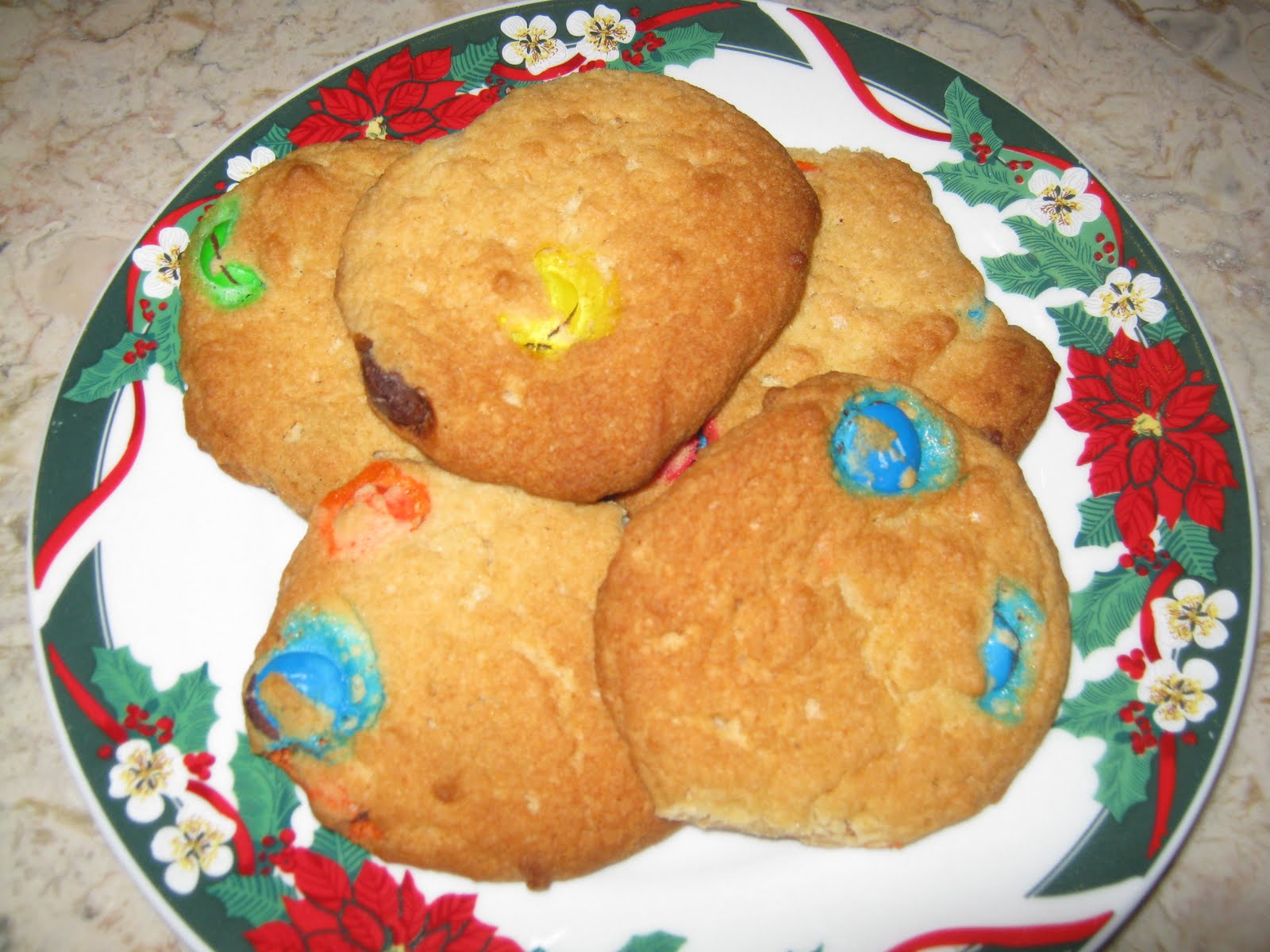 Introduza os M&M's e a restante farinha e, com as mãos, amasse bem até obter uma mistura homogénea.