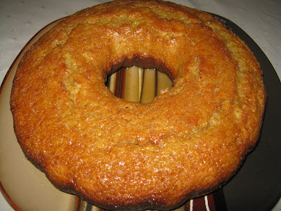 Quando o bolo estiver cozido, desenforme-o ainda morno para o prato de servir e regue com o preparado anterior.
