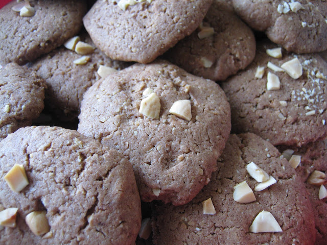 Colocar os cookies no tabuleiro e levar a cozer cerca de 10 minutos em forno pré-aquecido a 170ºC.