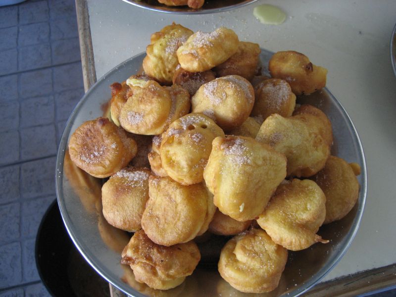 Finalmente vão para uma taça onde serão polvilhadas com açúcar em pó e canela.