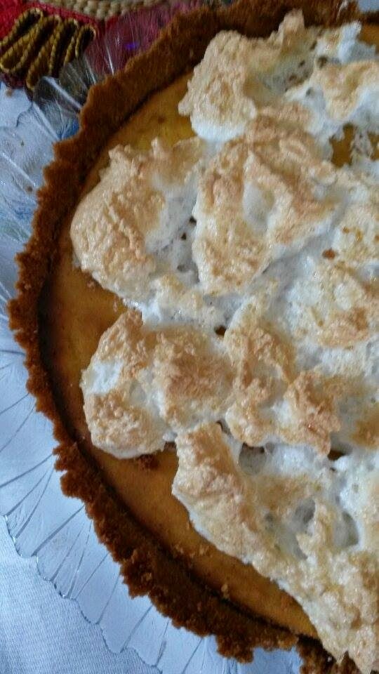 Aquecer o forno a 170º. Triturar as bolachas finamente (com um processador ou uma varinha mágica) e adicionar a manteiga derretida. Misturar até ficar uma massa compacta. Forrar uma tarteira de fundo amovível com a massa, calcando bem, com a ajuda de uma colher. Levar ao forno 5 minutos e retirar para arrefecer. Bater as gemas com o leite condensado e o sumo de limão, até ficar um creme espesso. Levar ao forno cerca de 15 minutos. Retirar e deixar arrefecer. Bater as claras em castelo com uma colher de sobremesa bem cheia de açúcar. Cobrir a tarte com este merengue e levar novamente ao forno só o tempo de alourar o merengue. Retirar e deixar arrefecer. Eu cobri a tarte às colheradas e ficou com este aspecto!
