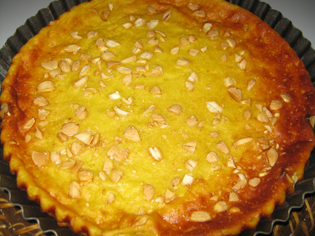 Salpicar por cima com as amêndoas e levar ao forno a 180º durante cerca de 30 minutos ou até ficar dourada e consistente.